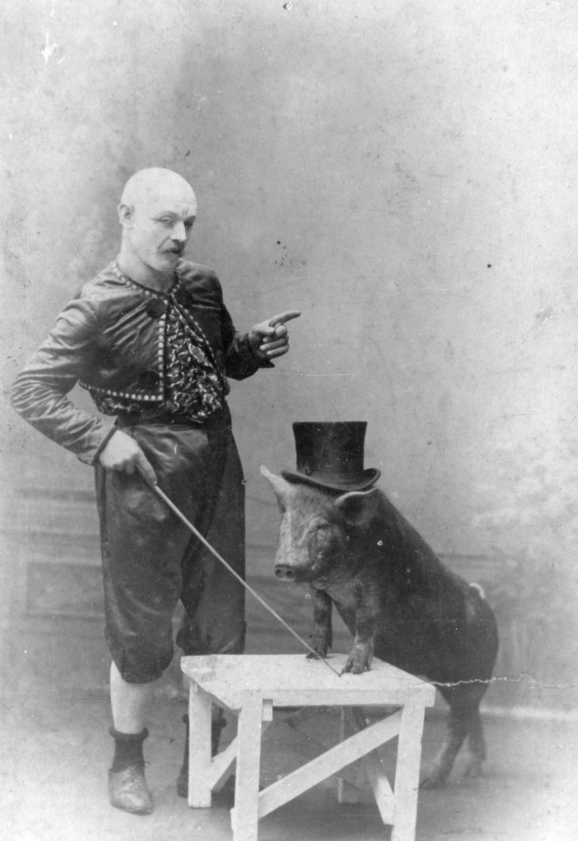 Det har faktisk været medvirkende til at jeg selv er blevet kendt som "grisedomptør". Billedet er fra ca 1890.